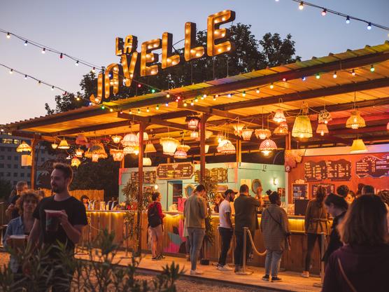Tienes que desearlo y tomar caminos secundarios desde la Gare de Lyon para finalmente encontrar La Javelle. Pero, una vez allí, sucede la magia. Al caer la noche, lupiottes multicolores se transformaron en una gran bola de discoteca. En un pequeño escenario con pista de baile, para aprender a bailar como en un camping del sur de Francia, tanto neófitos como acróbatas experimentados se acercan para formar dúos y arrullar al atardecer. Salsa, afrobeat, rap, flamenco, samba, rock, disco… en cuanto a programación, hay para todos los gustos. En cuanto a las propuestas gourmet, con muchas opciones tan vegetarianas como carnívoras. Recordaremos las empanadas colombianas (11€ para cuatro) con su inesperada salsa bearnesa, y generosas pizzas para compartir. Y para acompañarlo todo: una pinta de té helado o limonada casera (5€), o incluso una jarra de sangría (28€ 1,5 l).